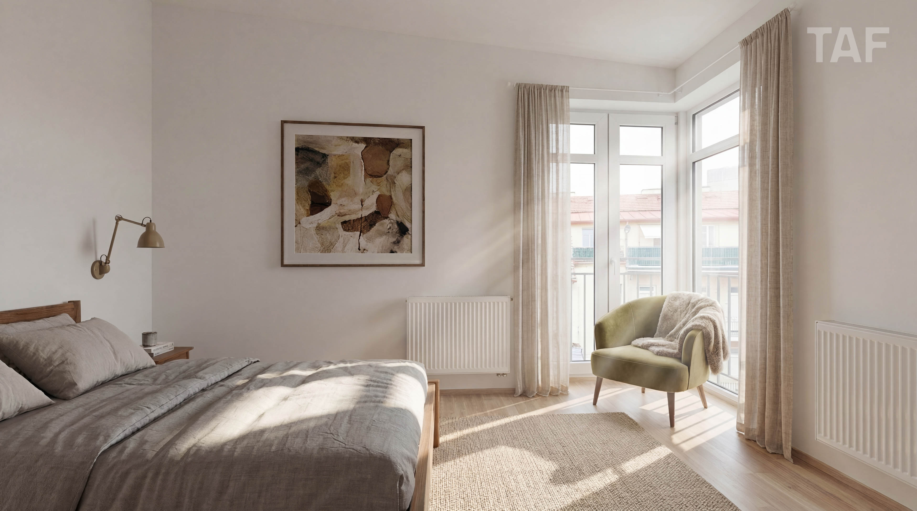 Dispozice nabízí dva samostatné pokoje a oddělenou kuchyň. Kvalitní dřevěné podlahy dodávají interiéru příjemnou atmosféru a nadčasový vzhled. Orientace na dvě světové strany zajišťuje dostatek přirozeného světla po celý den. Byt je ideální jak pro vlastní bydlení, tak jako investiční příležitost k pronájmu.