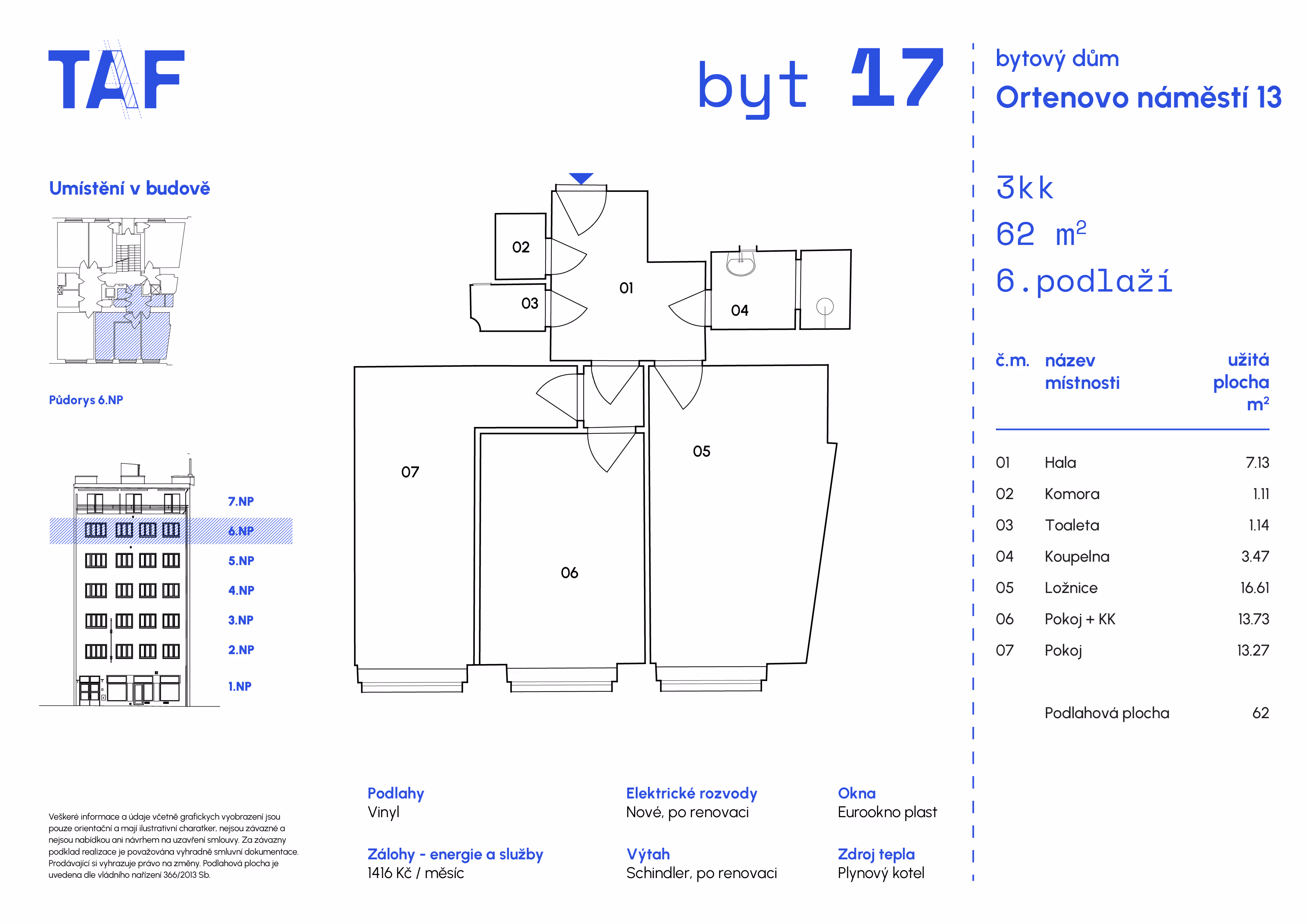 Nabízíme k prodeji nadstandardně zrekonstruovaný byt o dispozici 3+kk a ploše 62 m², který se nachází v 6. nadzemním podlaží činžovního domu s železobetonovým skeletem. Dům prošel kompletní rekonstrukcí společných prostor a působí velmi reprezentativně. K bytu je možné přikoupit nově vybudovanou zděnou sklepní kóji.Co Vás zaujme:• Byt prošel kompletní rekonstrukcí, při které byl kladen důraz na kvalitní materiály a nadčasový design.• V celém bytě byla položena prémiová vinylová podlaha o tloušťce 6 mm, která kombinuje moderní vzhled s dlouhou životností. Zaujme bezprahovým řešením po celé ploše bytu• Koupelna je zcela nová, včetně obkladů, sanity i rozvodů.Byt nabízí ideální kombinaci moderního standardu a půvabu klasického městského bydlení. Vzdušná dispozice 3+kk s velkorysým obývacím prostorem a dvěma samostatnými ložnicemi vyhoví jak rodinám, tak párům nebo náročnějším jednotlivcům.Lokalita s městským pulzem a klidem v jednomOrtenovo náměstí je vyhledávanou adresou díky své strategické poloze – v docházkové vzdálenosti najdete veškerou občanskou vybavenost: obchody, restaurace, kavárny, lékárny, školy i školky. Výborné dopravní spojení zajišťuje tramvajová zastávka Ortenovo náměstí i stanice metra C – Nádraží Holešovice, které jsou vzdáleny jen pár minut chůze.⸻Hledáte moderní byt s charakterem ve skvělé pražské lokalitě? Neváhejte nás kontaktovat pro více informací nebo sjednání prohlídky. Rádi Vás tímto jedinečným bytem osobně provedeme.