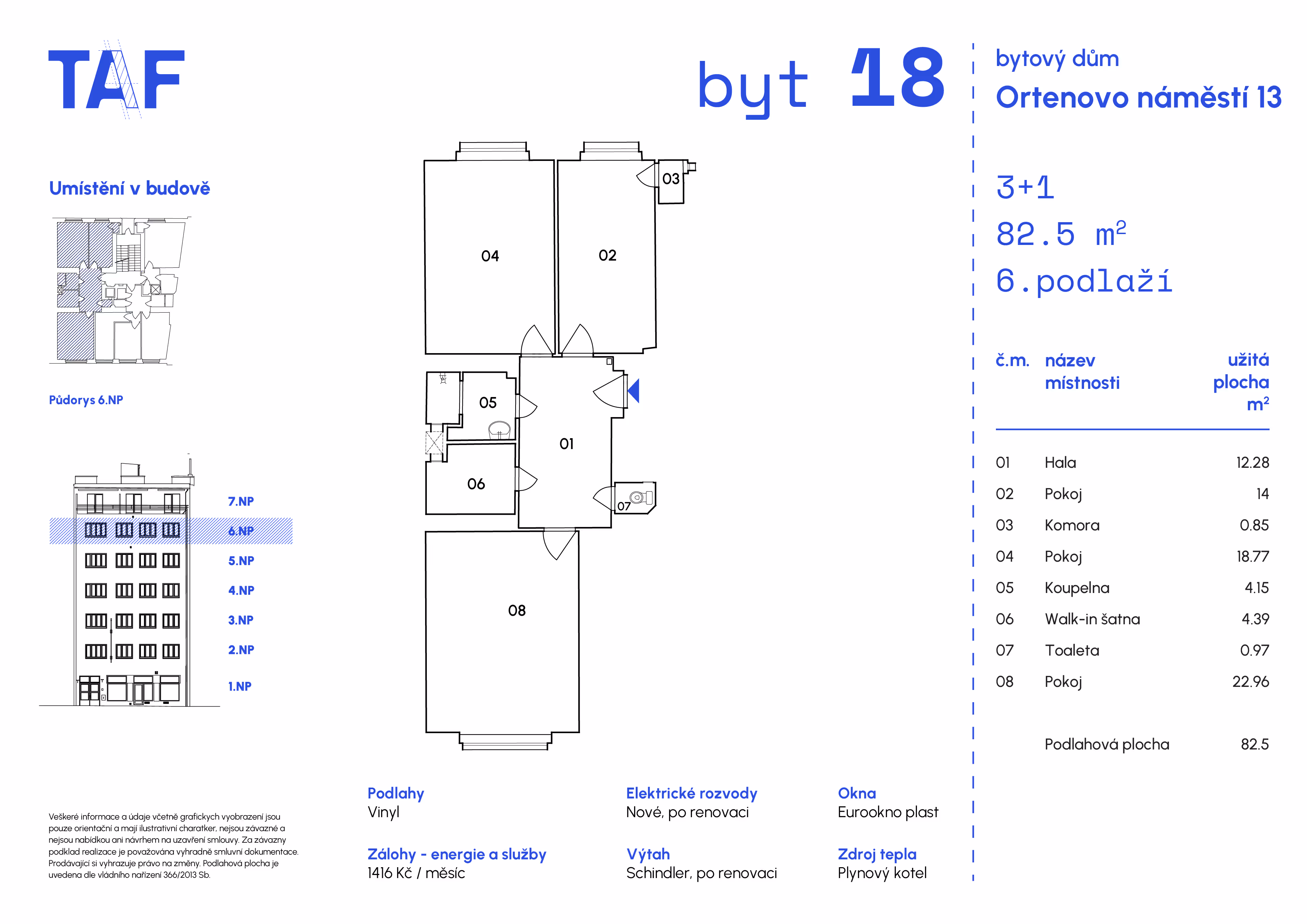 • Součástí bytu je i praktická walk-in šatna, která poskytuje dostatek úložného prostoru a zvyšuje komfort každodenního bydlení.